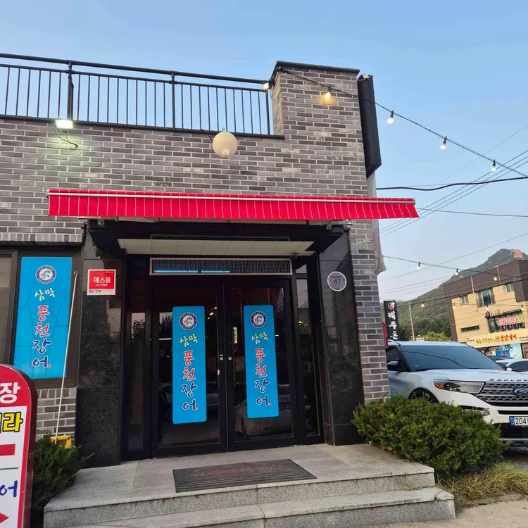 삼막풍천장어는 안양시 만안구 삼막로39번길 47에 위치해 있어요. 이곳은 주차 공간이 넉넉해서 차량으로 방문하기에도 아주 편리해요. 외관은 현대적인 벽돌 파사드로 꾸며져 있으며, 큰 유리문과 파란색 배너가 인상적이에요.
