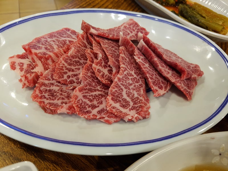 이 사진에서 보시는 것처럼, 고기의 색깔과 마블링이 정말 아름답죠?