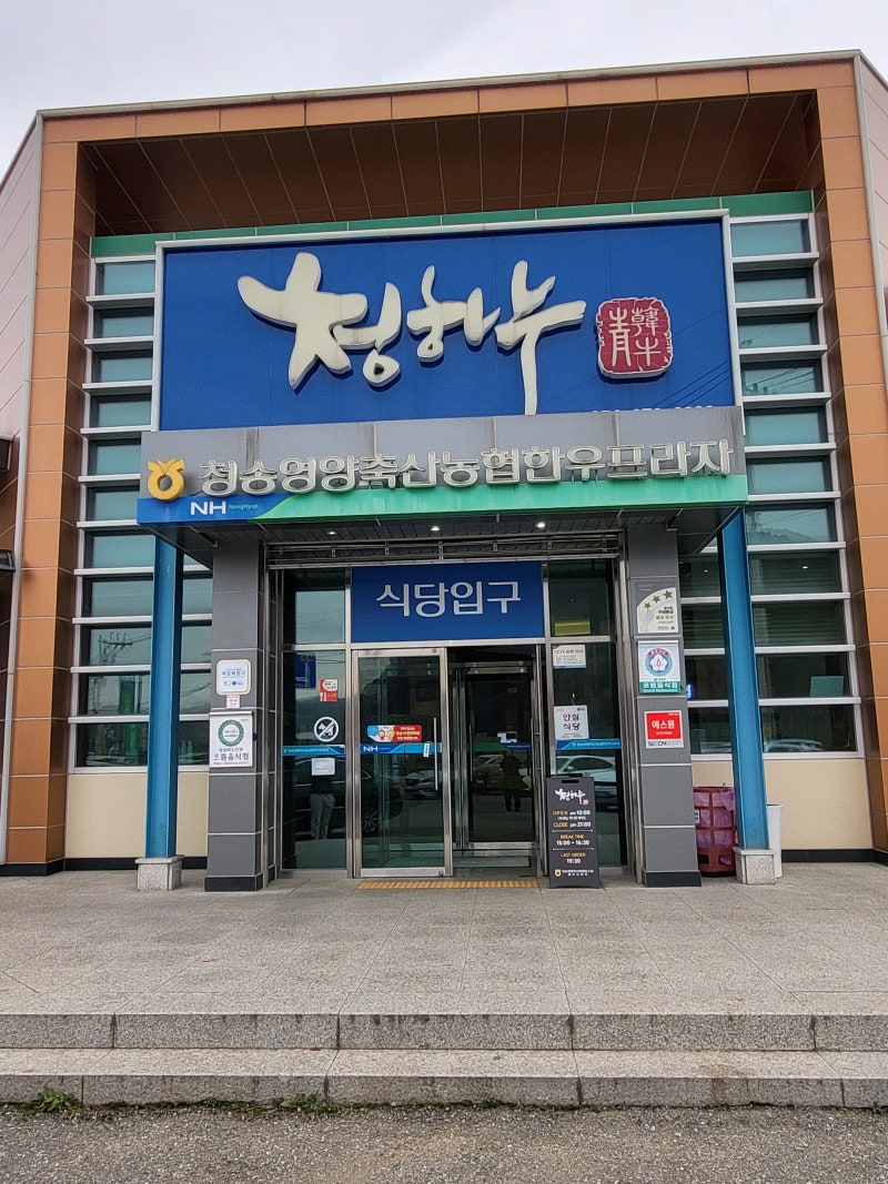 청하누의 위치는 경상북도 청송군에 있으며, 접근성이 좋아 많은 관광객들이 방문하기에 적합해요. 식당의 외관은 현대적인 디자인으로, 큰 유리문과 함께 세련된 느낌을 주고 있어요.