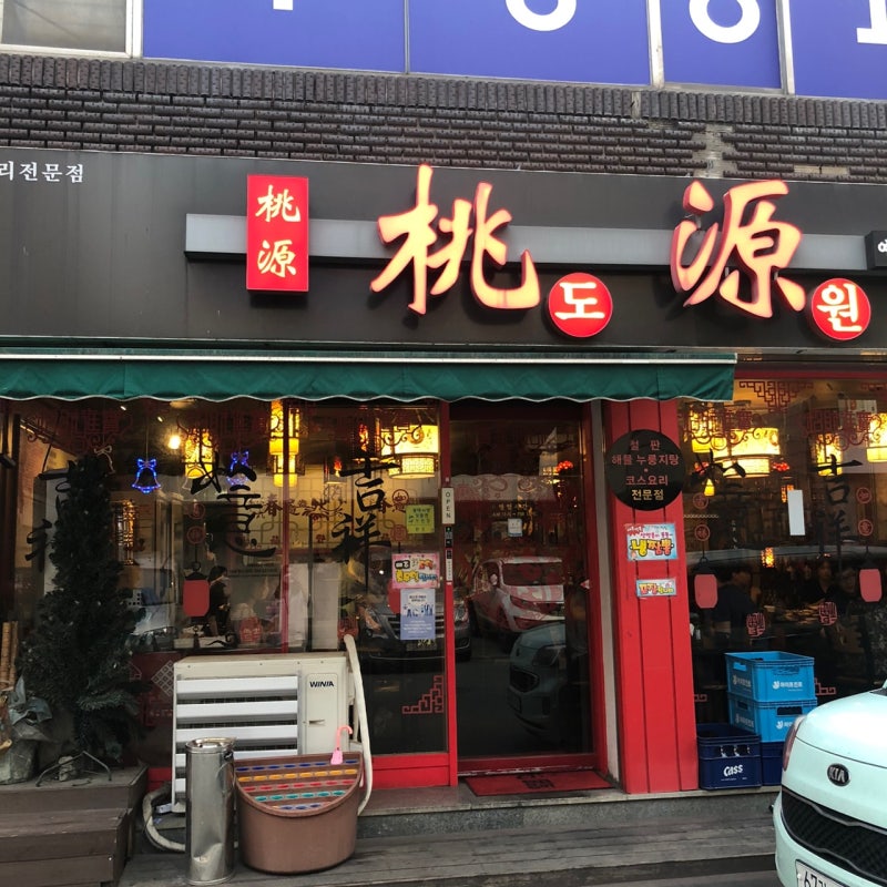도원은 평택의 번화가에 위치해 있어요. 외관은 밝은 빨간색 간판이 눈에 띄고, 전통적인 중국식 장식이 더해져 있어요.