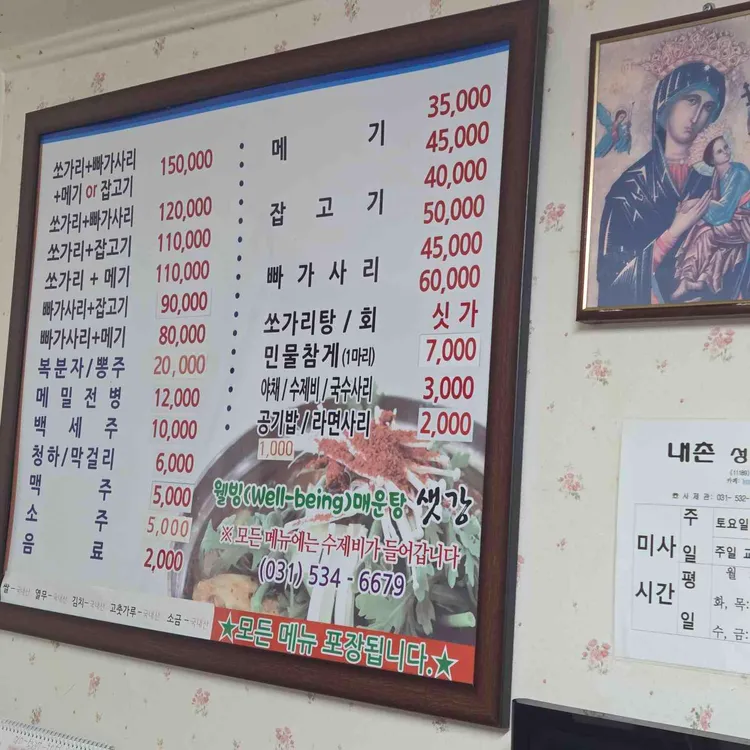 이곳의 대표 메뉴는 바로 매운탕이에요. 다양한 생선과 해산물이 들어가고, 국물 맛이 정말 깊고 진해요. 메뉴판을 보면 여러 가지 생선이 있는데, 특히 "메기"와 "잡고기"가 인기랍니다. 가격은 1인분 기준으로 약 10,000원에서 15,000원 정도로, 다양한 사이드 메뉴도 함께 제공돼요.